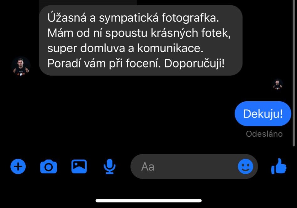 "Úžasná a sympatická fotografka. Mám od ní spoustu krásných fotek, super domluva a komunikace. Poradí vám při focení. Doporučuji!"